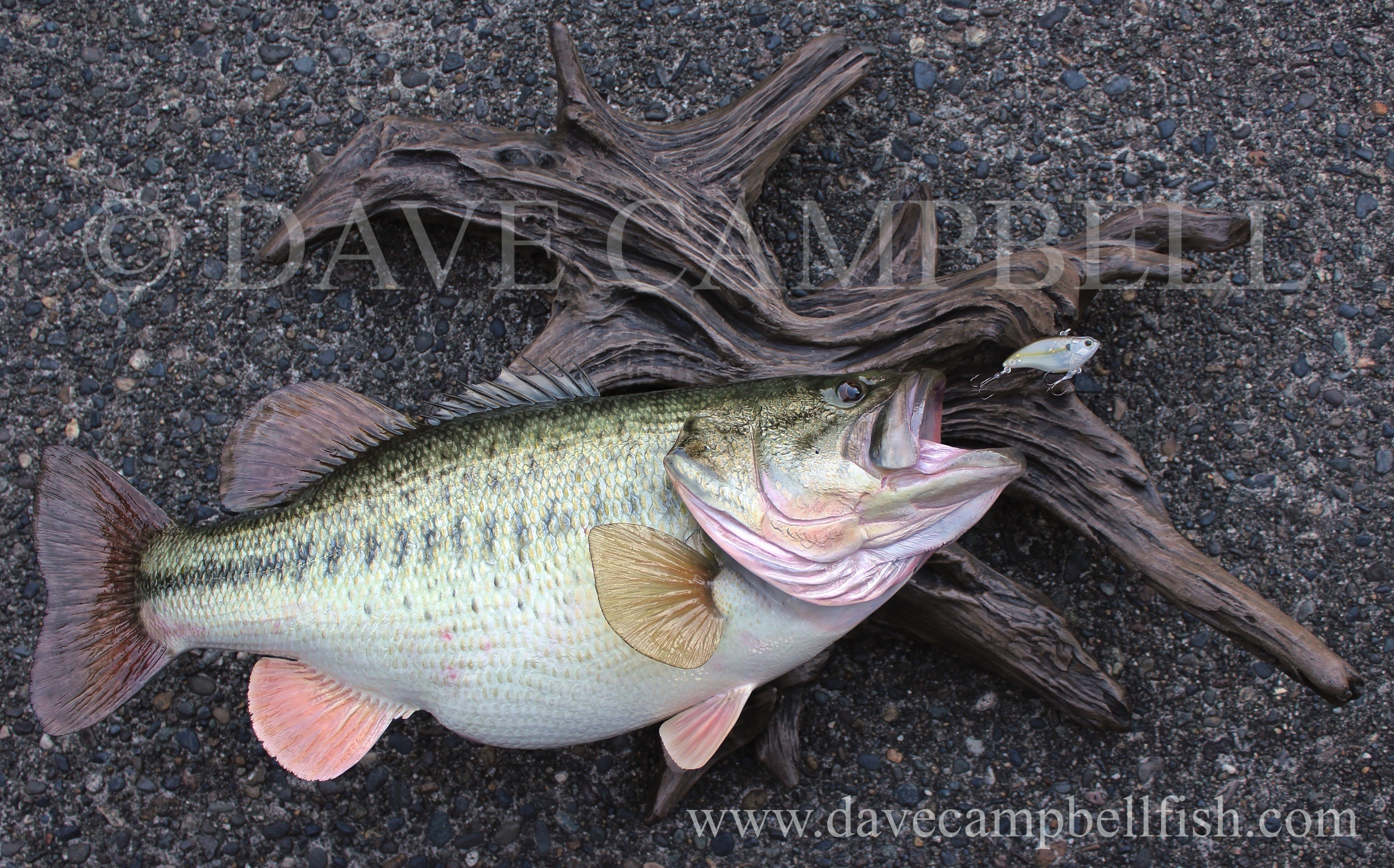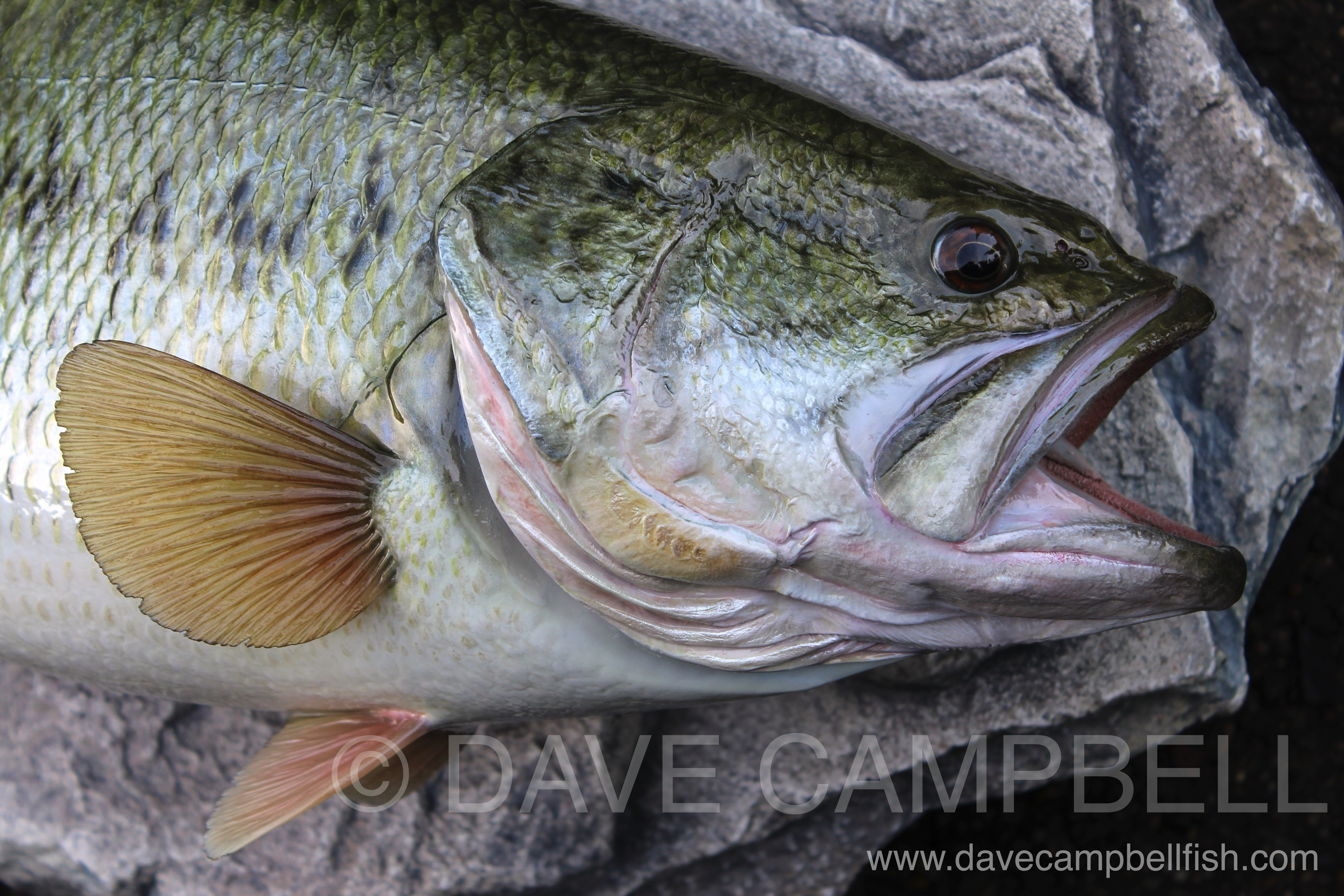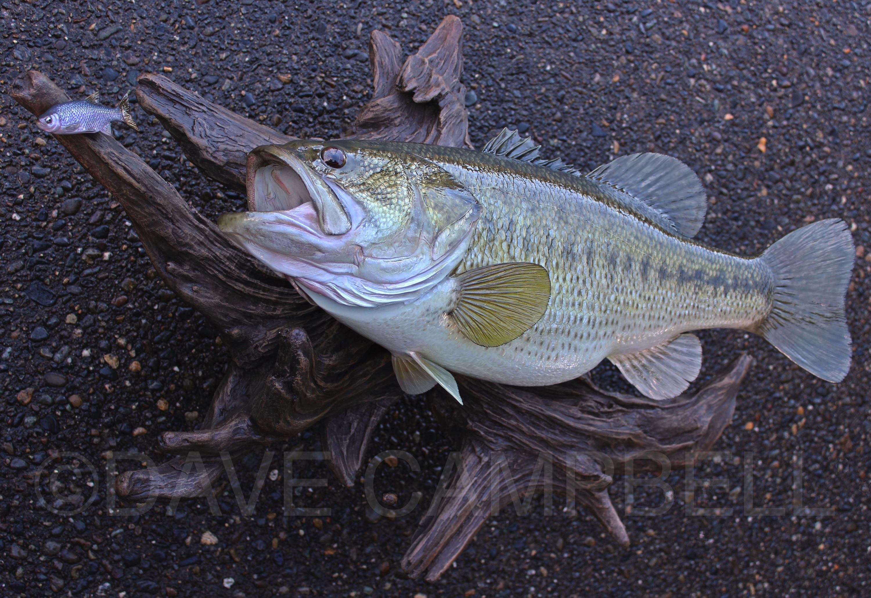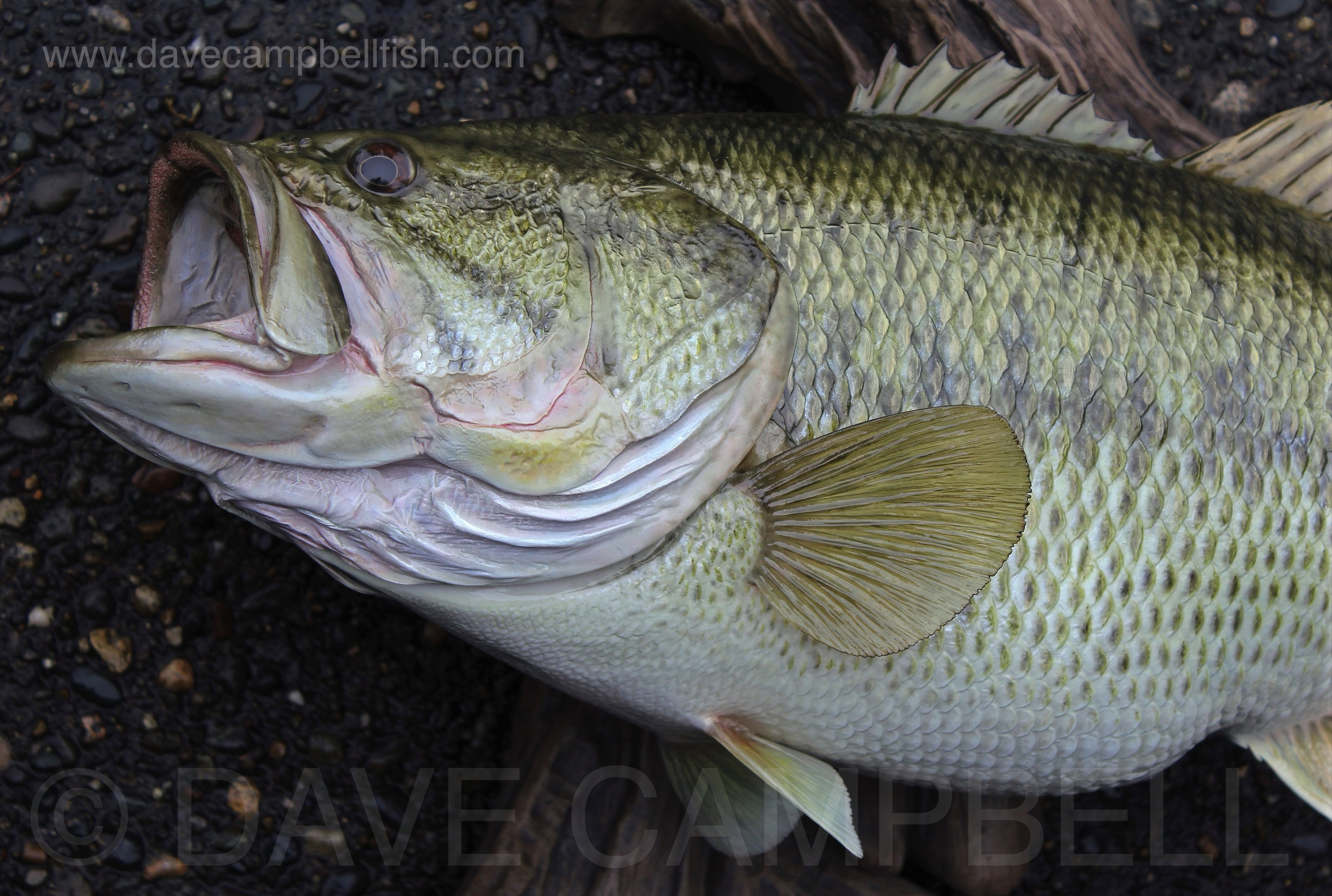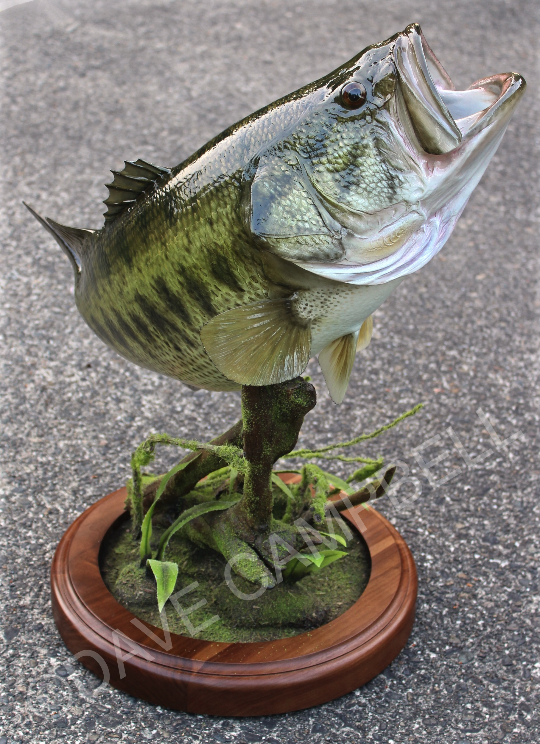 Dave Campbell’s Largemouth Bass mount commissions are the ultimate in anatomical accuracy and coloration with highly detailed custom color schemes comprised of both airbrushed and hand brushed features layered together to create amazing depth in the finished mount.