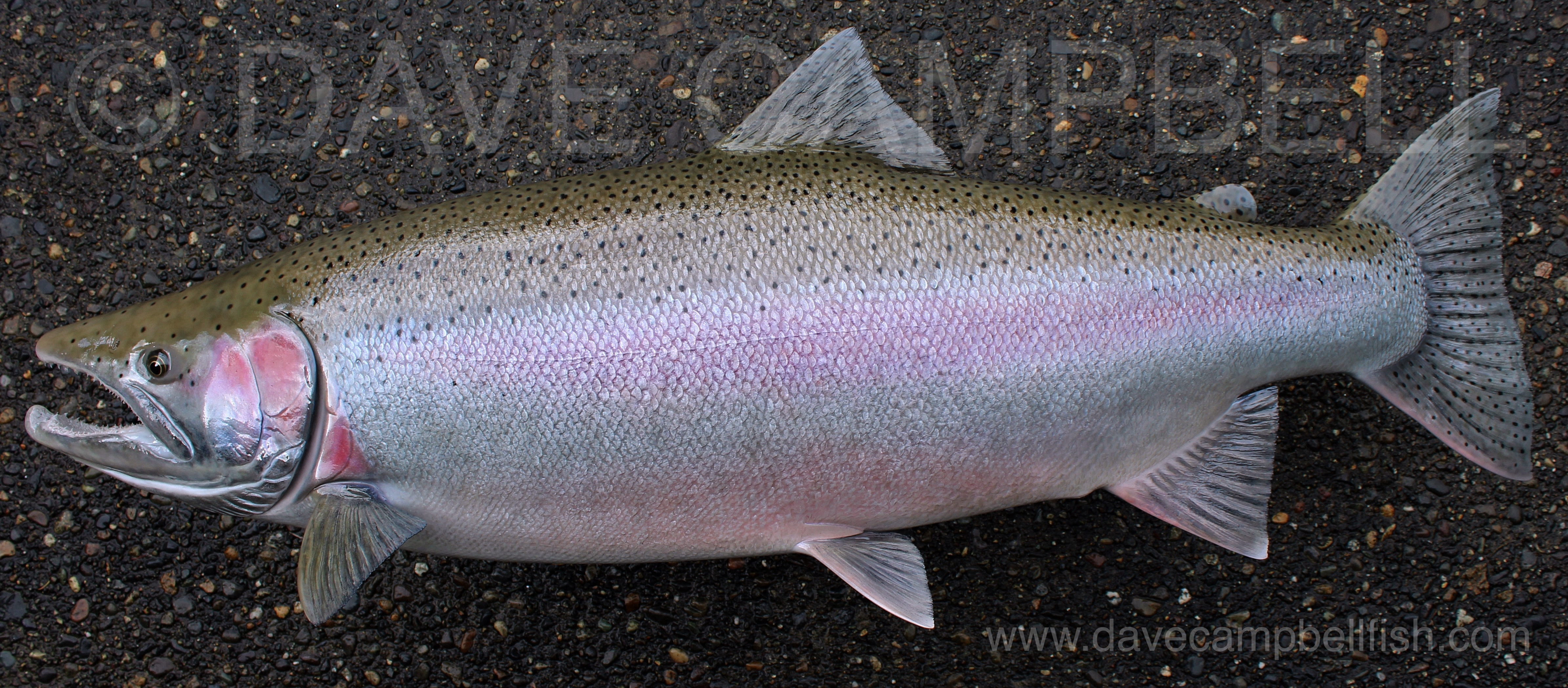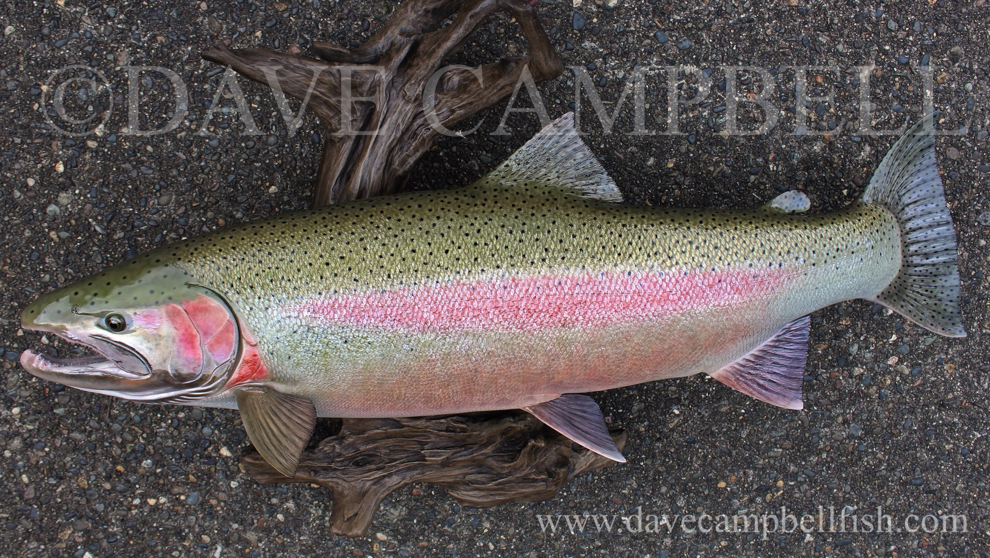Dave Campbell’s Steelhead mount commissions are the ultimate in anatomical accuracy and coloration with highly detailed custom color schemes comprised of both airbrushed and hand brushed features layered together to create amazing depth in the finished mount.